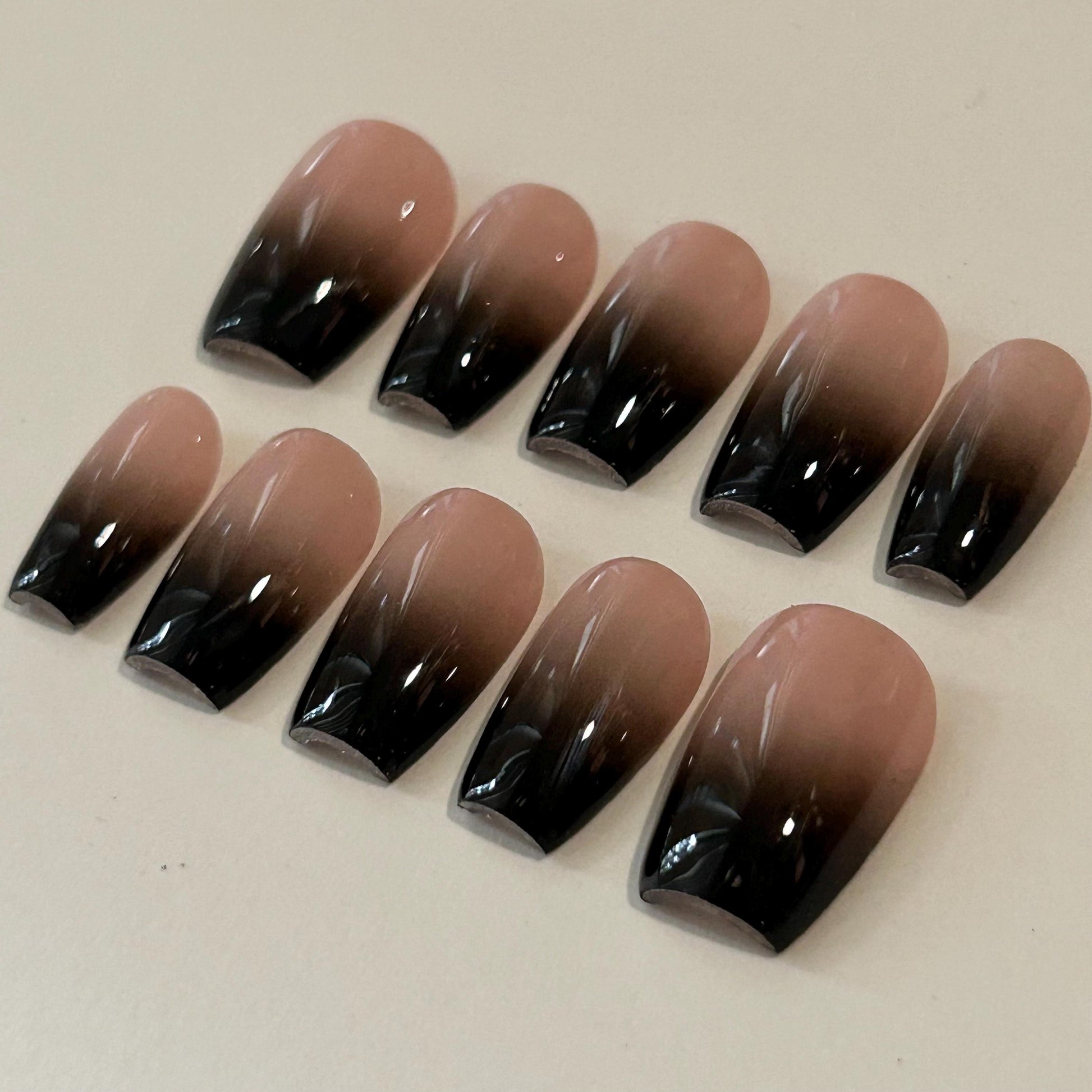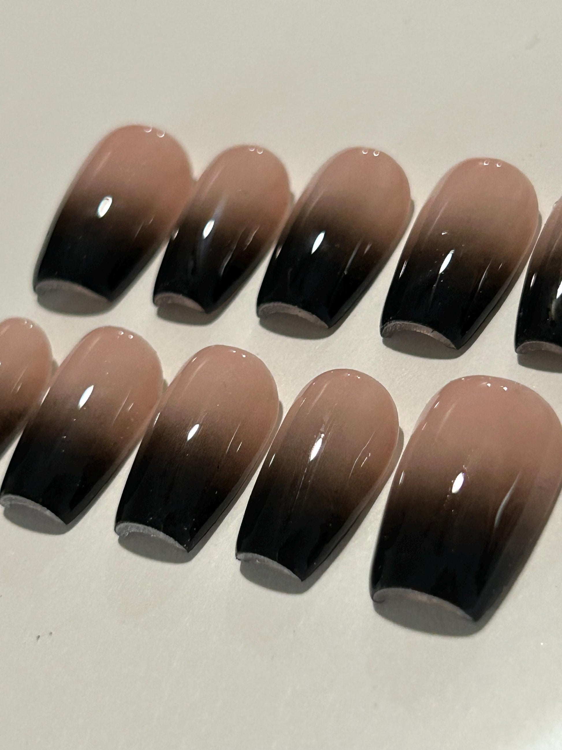 Pictured in Medium Square (base “S”, white tips) and Short Coffin (base “S”, black tips) Ombré boomer tips + your perfect base shade = the moody French set of your dreams. Choose your base color, and black or white tips.