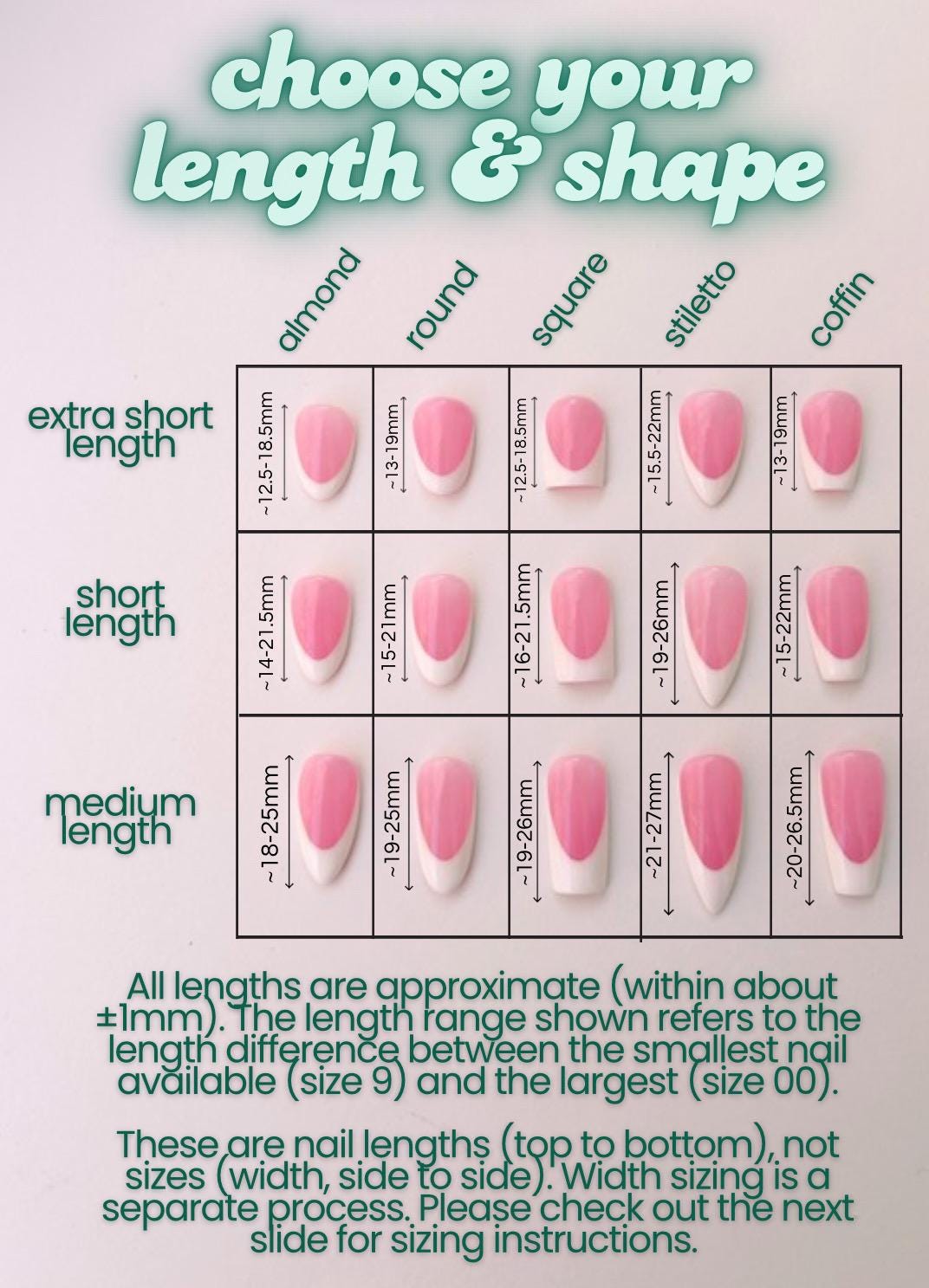 Shapes: Almond, Square, Round, Stiletto and Coffin