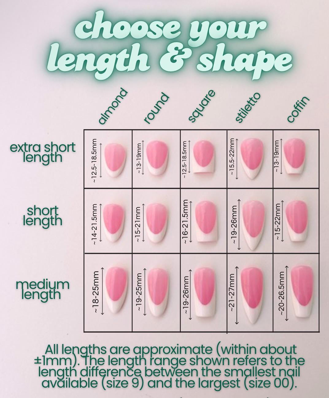 Shapes: Almond, Square, Round, Stiletto and Coffin